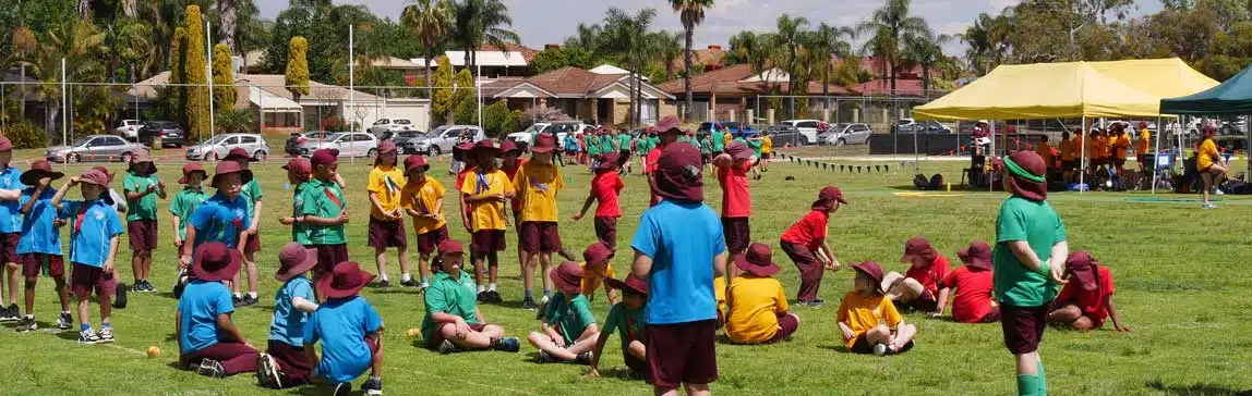 The senior children are not allowed on the oval during recess time. When the siren goes at the end of recess, go to your class and then come down to this area to line up in your factions, ready for your marching. The carnival for you begins at approximately 11.30am. The march past will start as soon as the carnival for the Junior Primary is completed.
