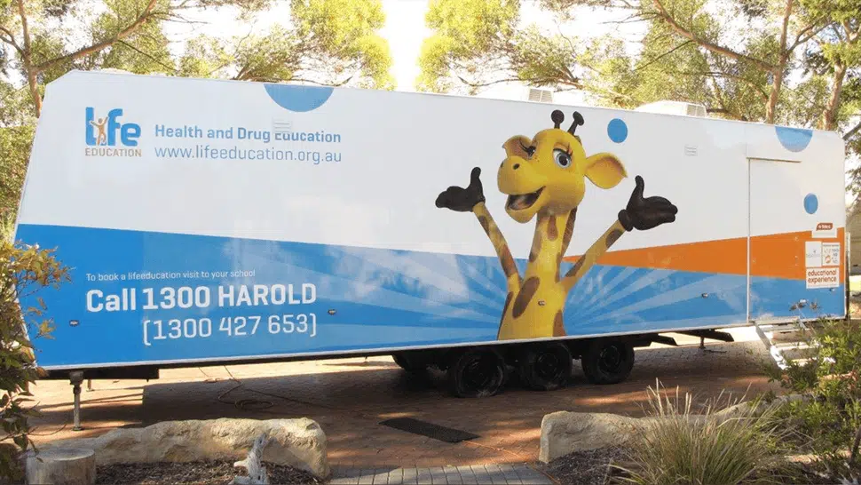 Teachers select from a range of age-appropriate health, drug and cybersafety modules to best meet the needs of their students. Students visit the Mobile Learning Centre, meet “Healthy Harold” the giraffe, and engage in an interactive learning session featuring props, role play and audiovisual material. This session is used as a platform to introduce and explore various health topics, which are then consolidated and extended further back in the classroom using comprehensive student and teacher resources. Modules are grouped into Pre-School, Junior Primary, Middle Primary and Upper Primary, and cover a variety of topics: